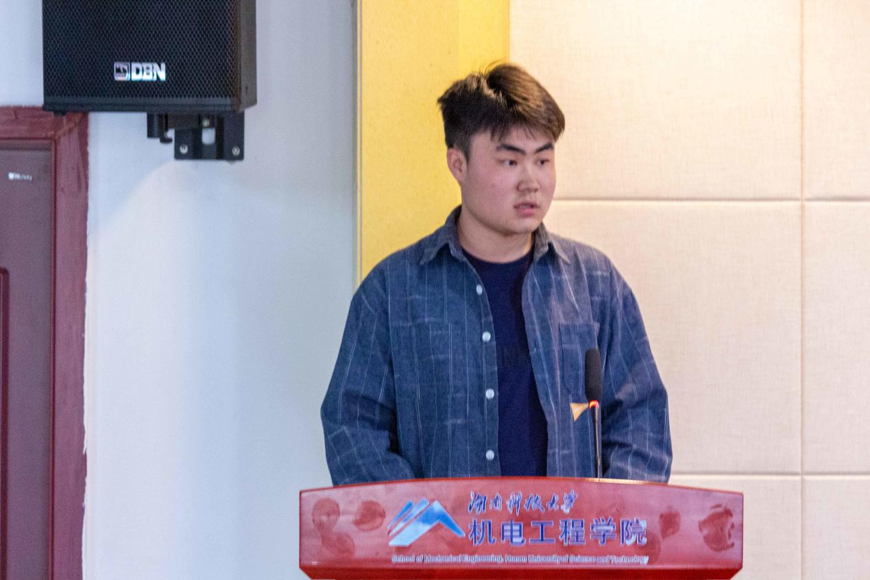 获奖学生代表韩贵鑫发表了获奖感言,韩贵鑫分享了自己过去三年的学习、工作、生活经历;他表示将更加努力学习,不辜负学院和企业的期望。