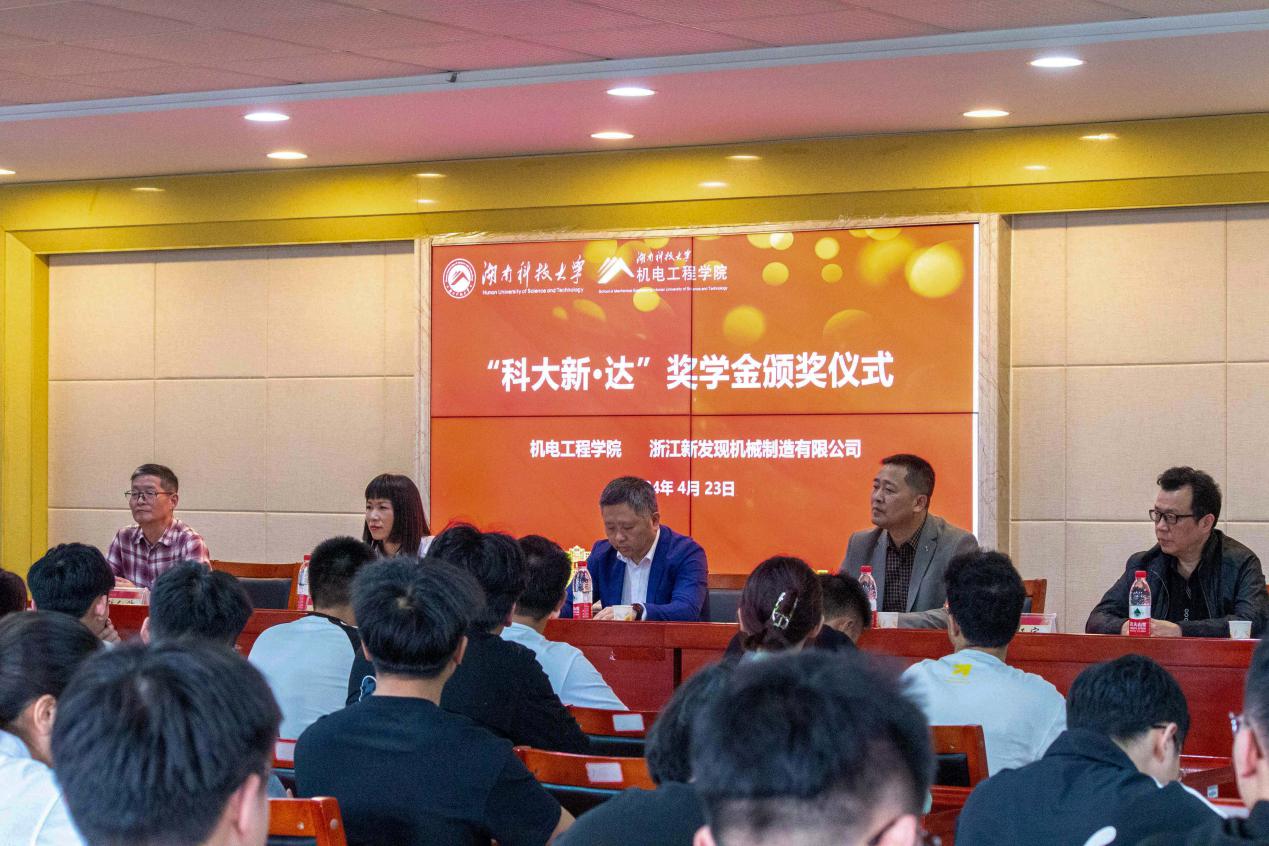 为深化校企合作,推动学生全方位成长,4月23日下午,云顶国际在线登录第二届“科大新·达”奖学金颁奖仪式于立功楼3-2成功召开。出席本次活动的嘉宾有浙江新发现机械制造有限公司总经理马勤妹、校招生就业处副处长邓辉、云顶国际唯一官方网站党委副书记杜鑫、原副院长毛征宇教授、工业工程系原主任张红波教授,云顶国际唯一官方网站的获奖学生及部分学生代表参会。